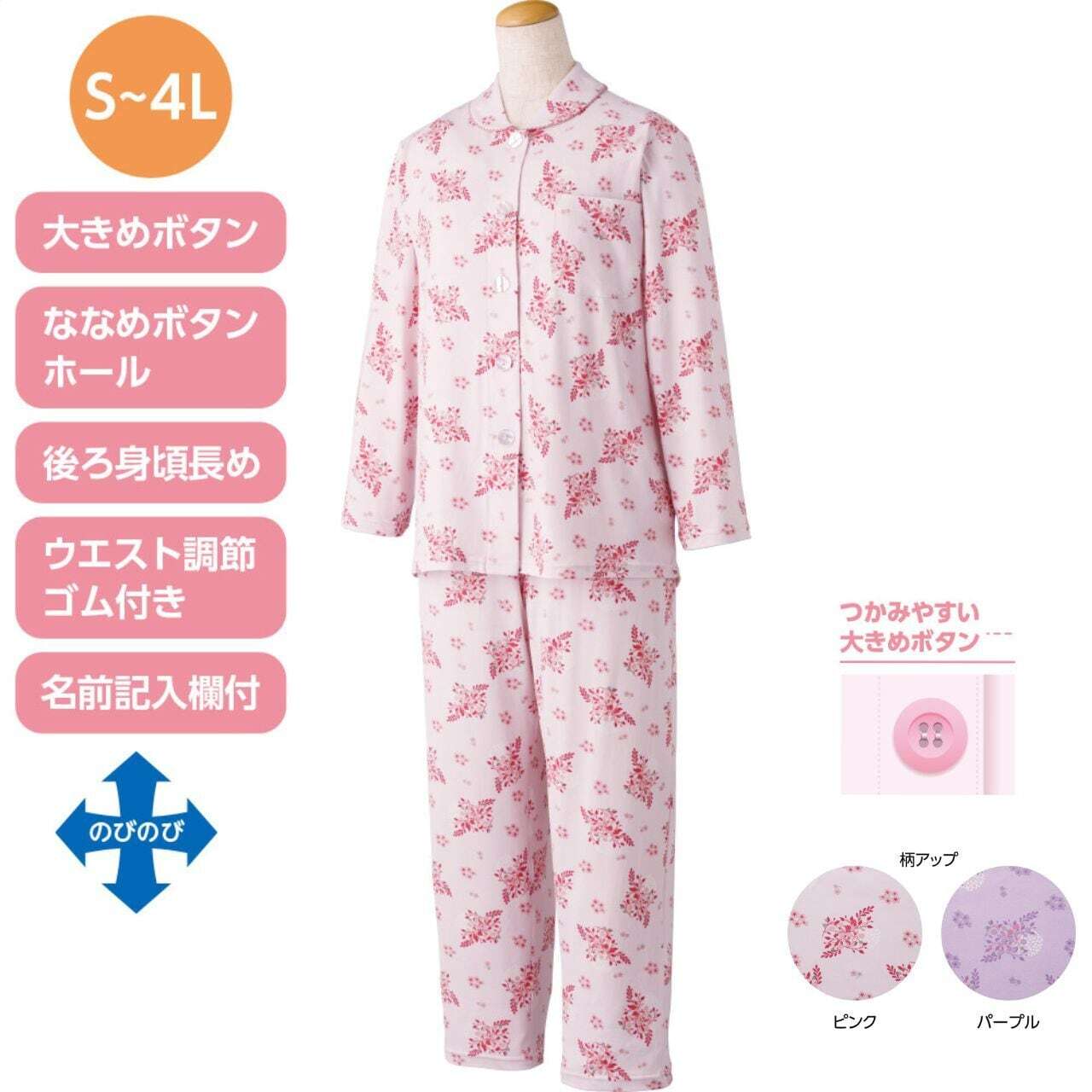 大きめボタンのびのびストレッチパジャマ
