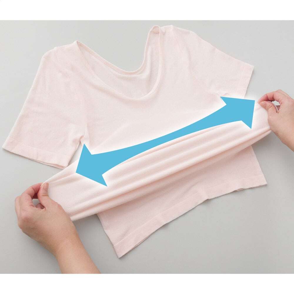 200%伸びる記事と脇に縫い目のない仕様で着心地・着脱共にらくらく。