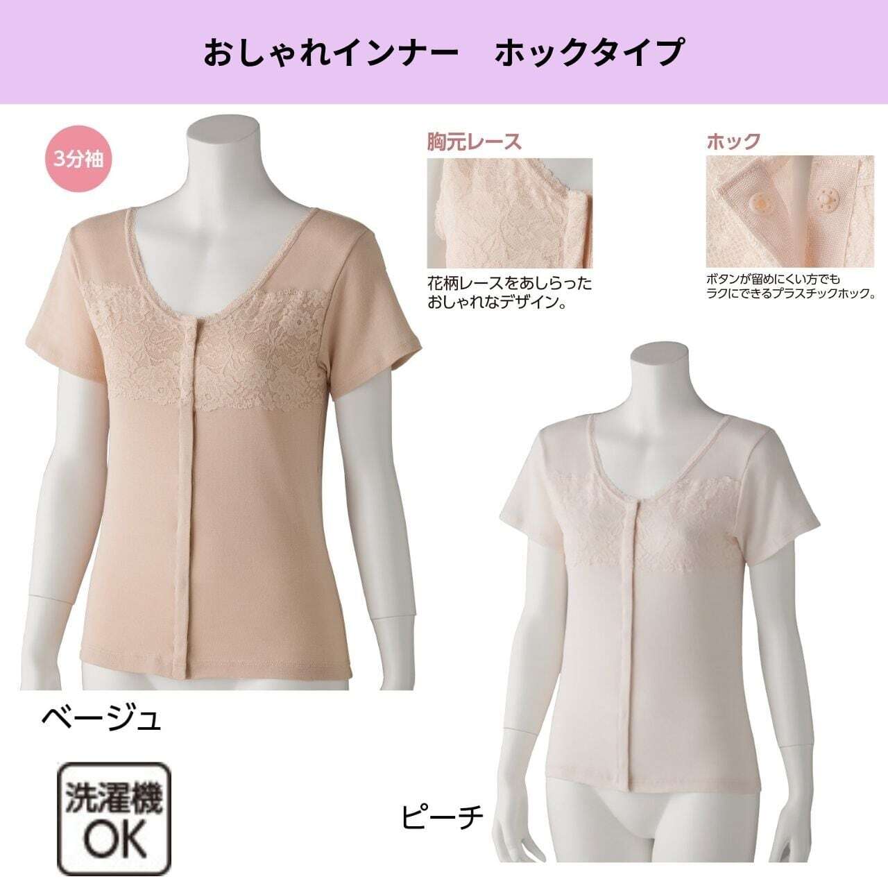 優れたデザインと機能性を兼ね備えたフロントレース3分袖ホックインナー