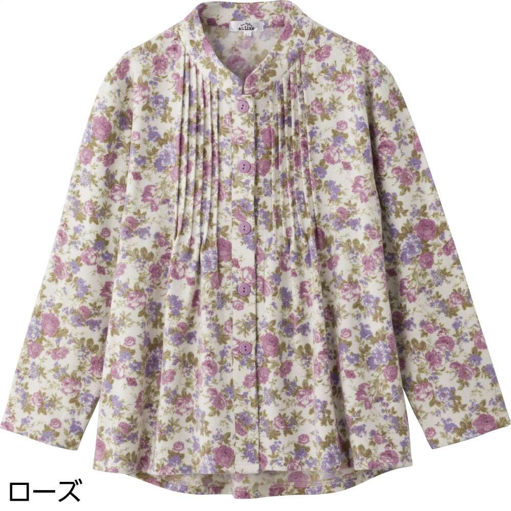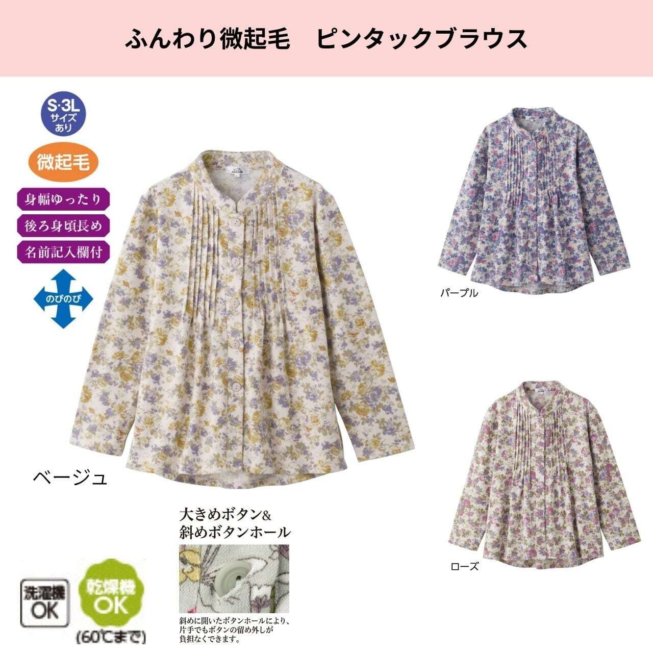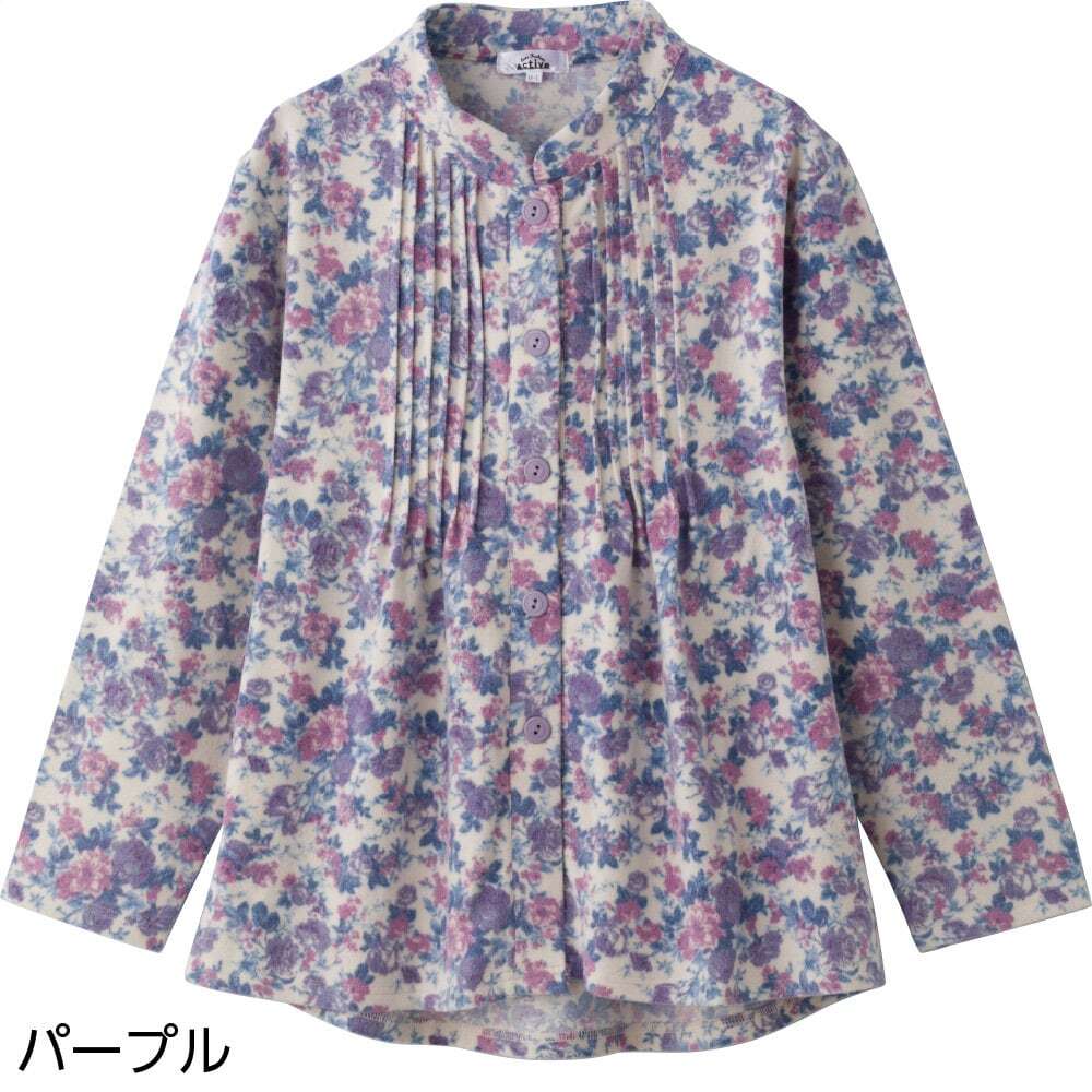 ふんわり微起毛斜め釦ホールピンタックブラウス
