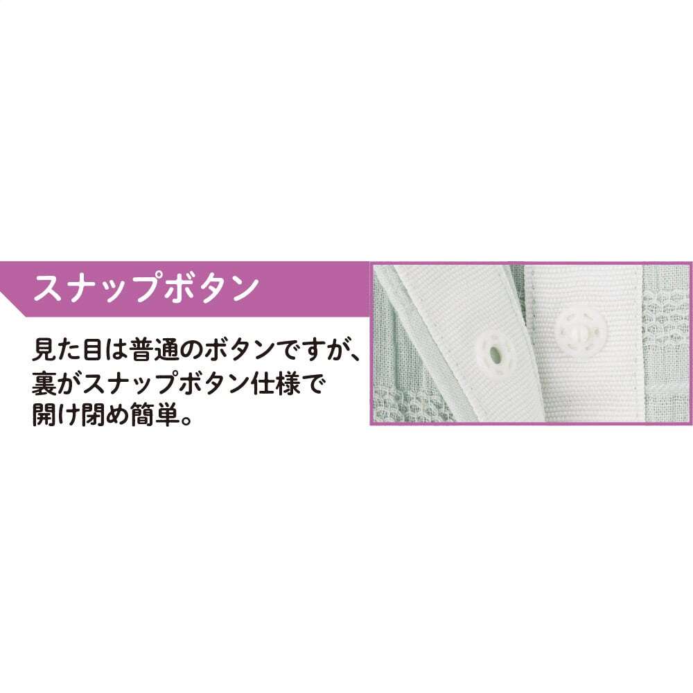 見た目は普通のボタンですが、裏がスナップボタン仕様で開け閉め簡単!
