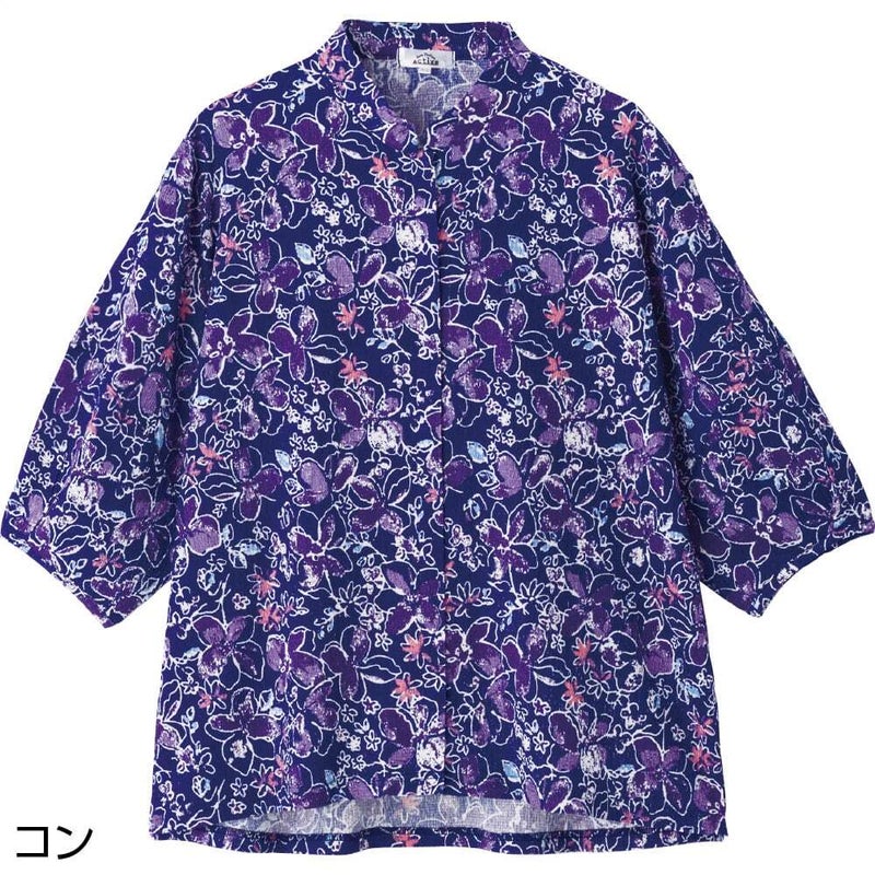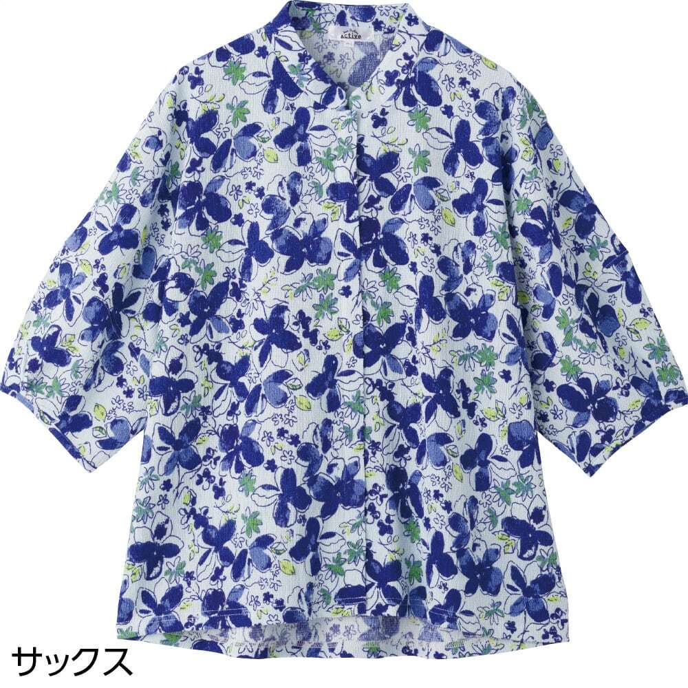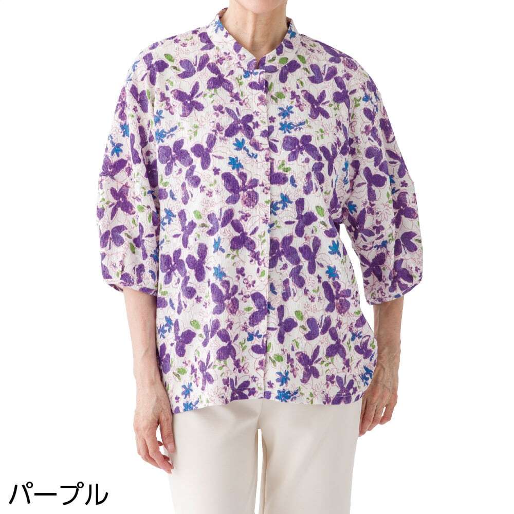 スナップ釦前開きパフスリーブブラウス
