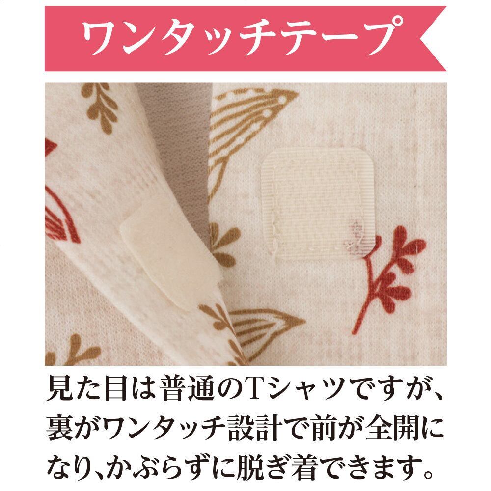 見た目は普通のTシャツですが、裏がワンタッチ設計で前が全開になり