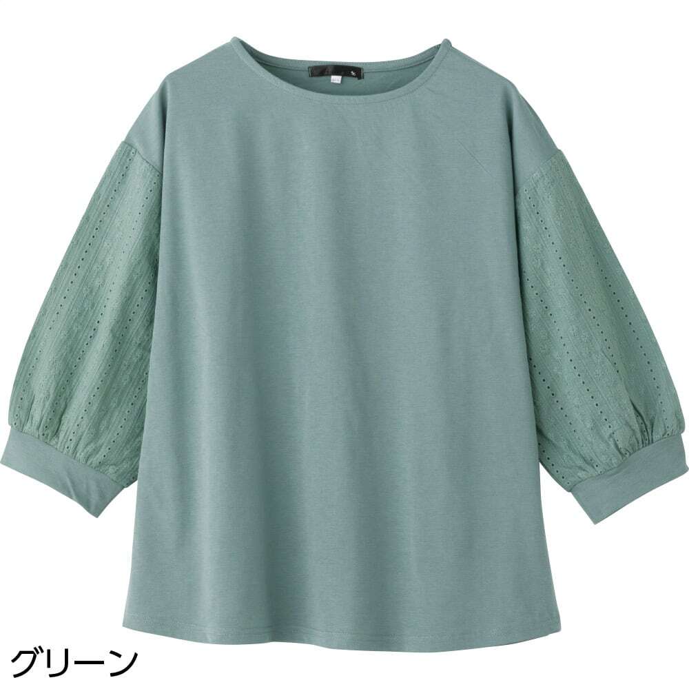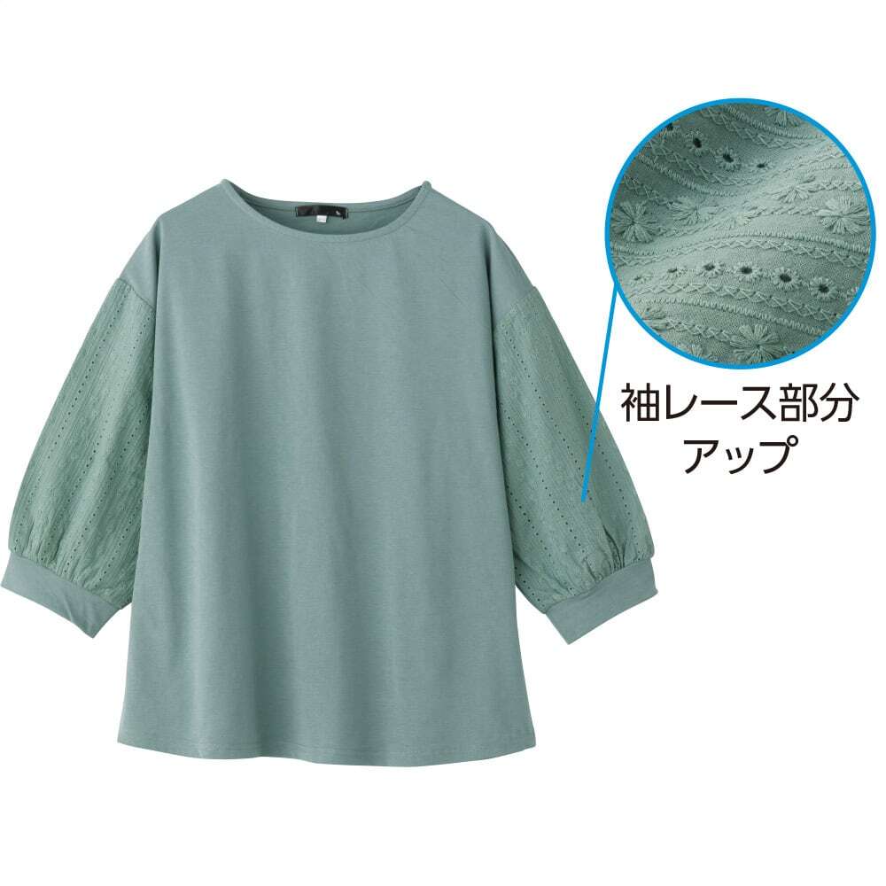 繊細なレース仕様のふんわりパフスリーブが気になる二の腕をカバー。