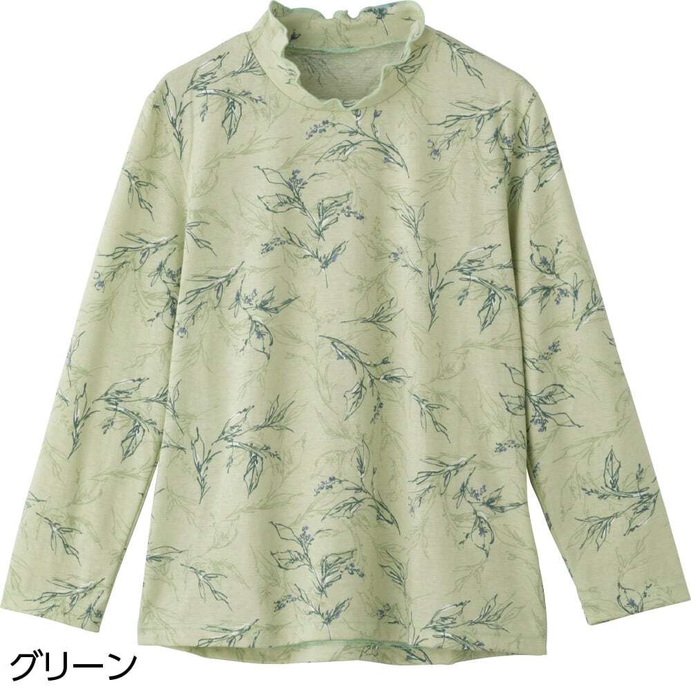 メロウネックで首元をカバーし、華やかな印象に!