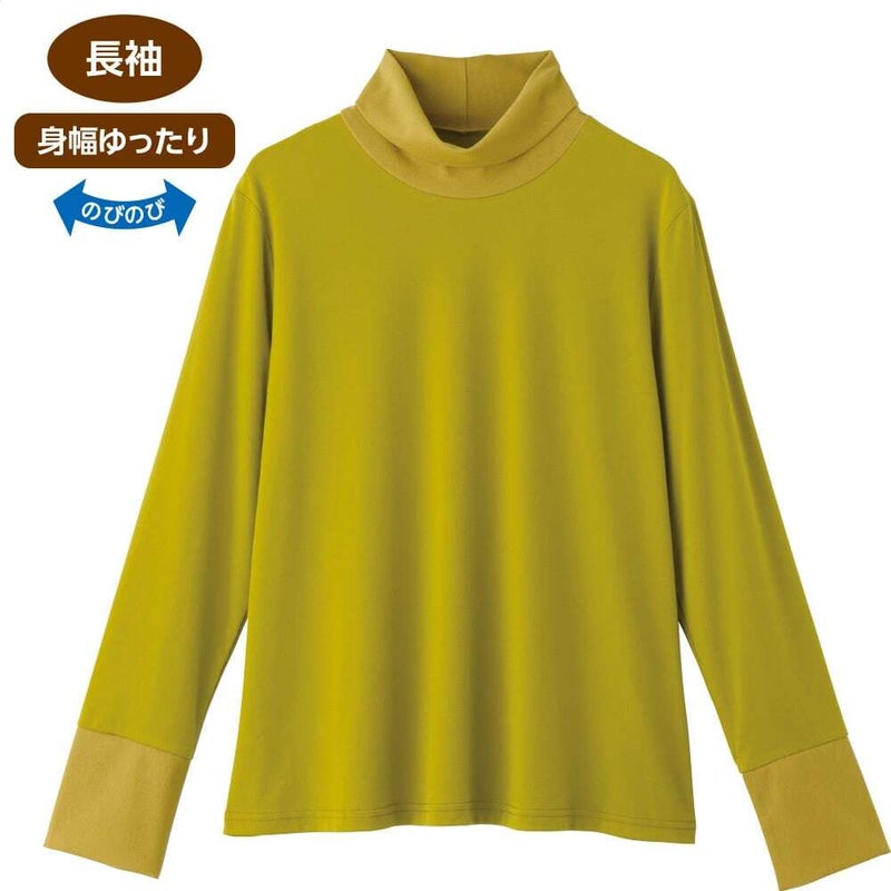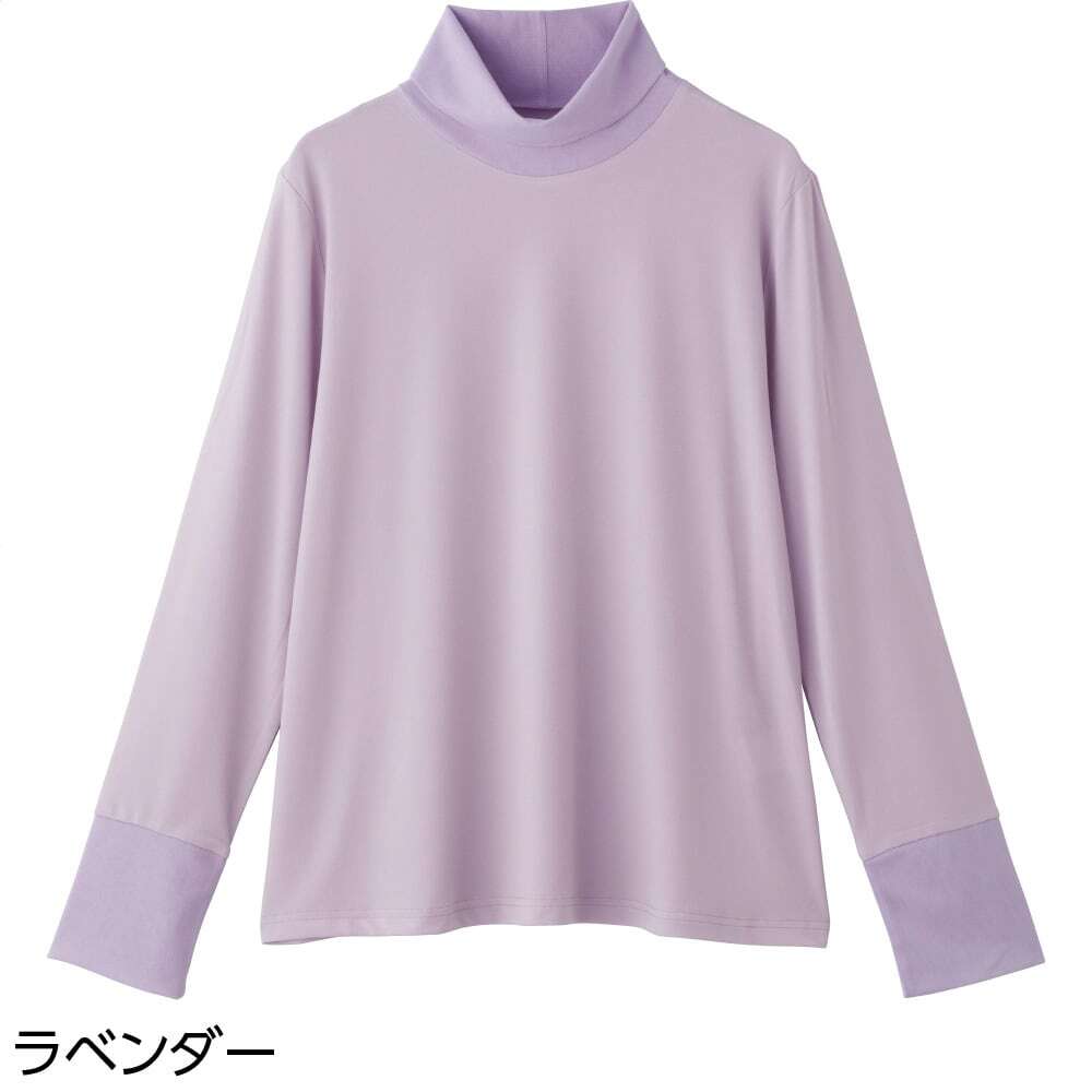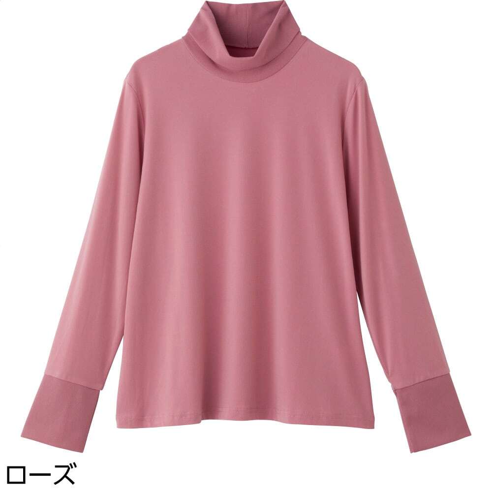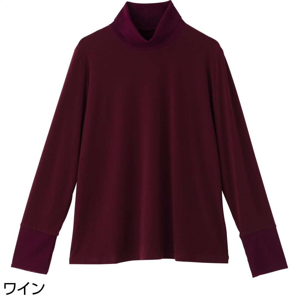 ゆったりハイネックで締め付け感なく首元カバー♪