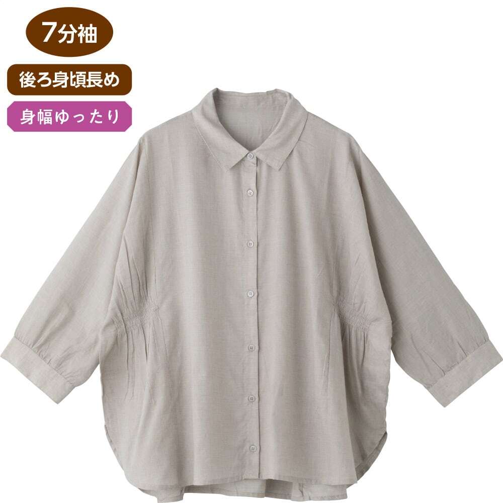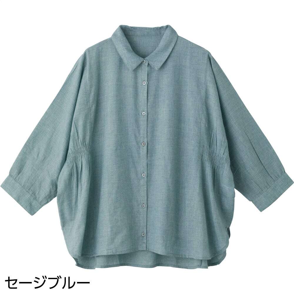7分袖シャンブレーブラウス