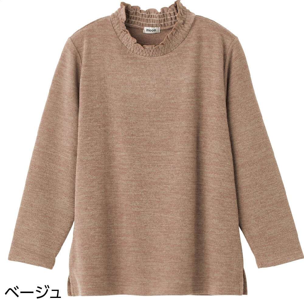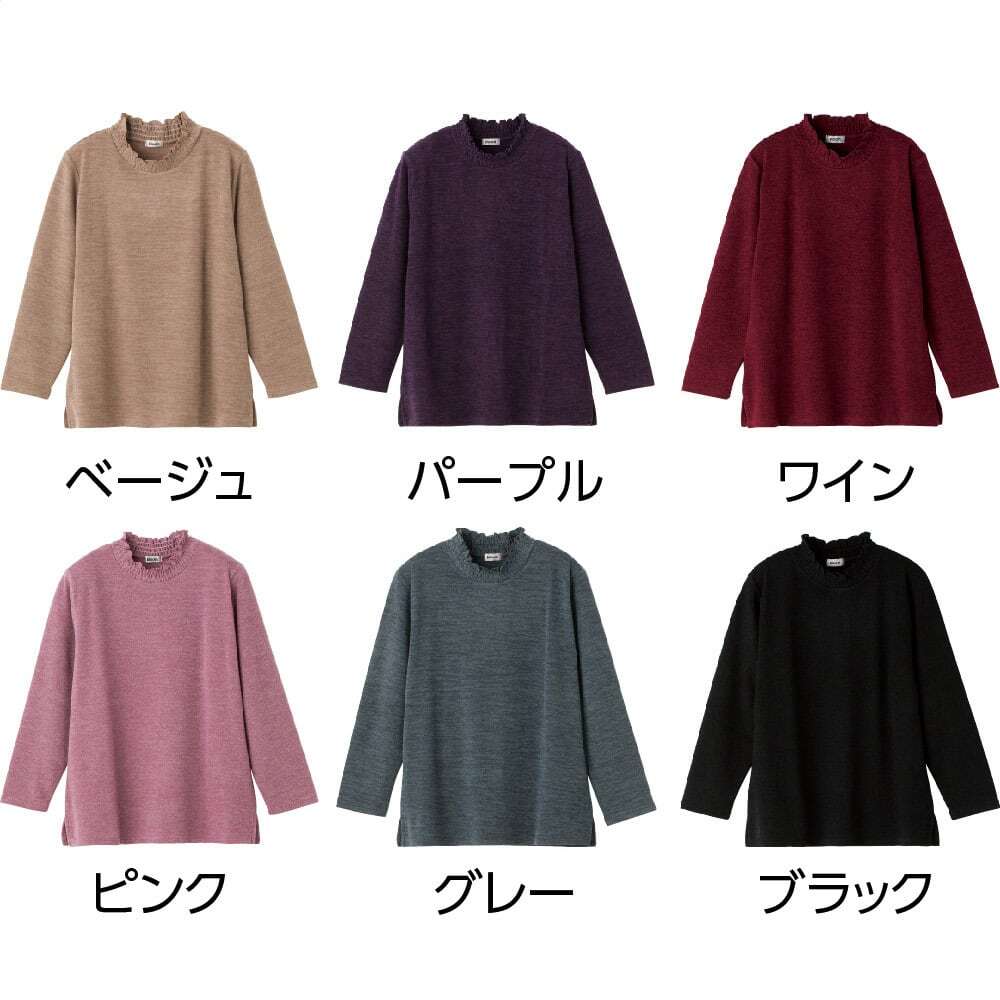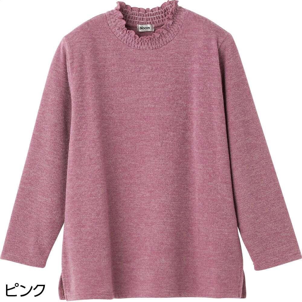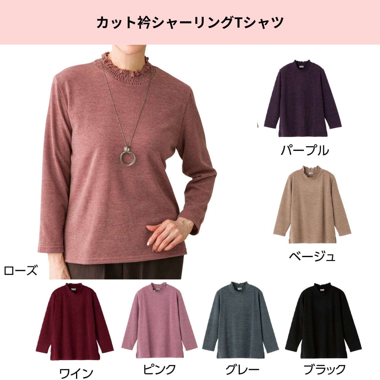 カット衿シャーリングTシャツ