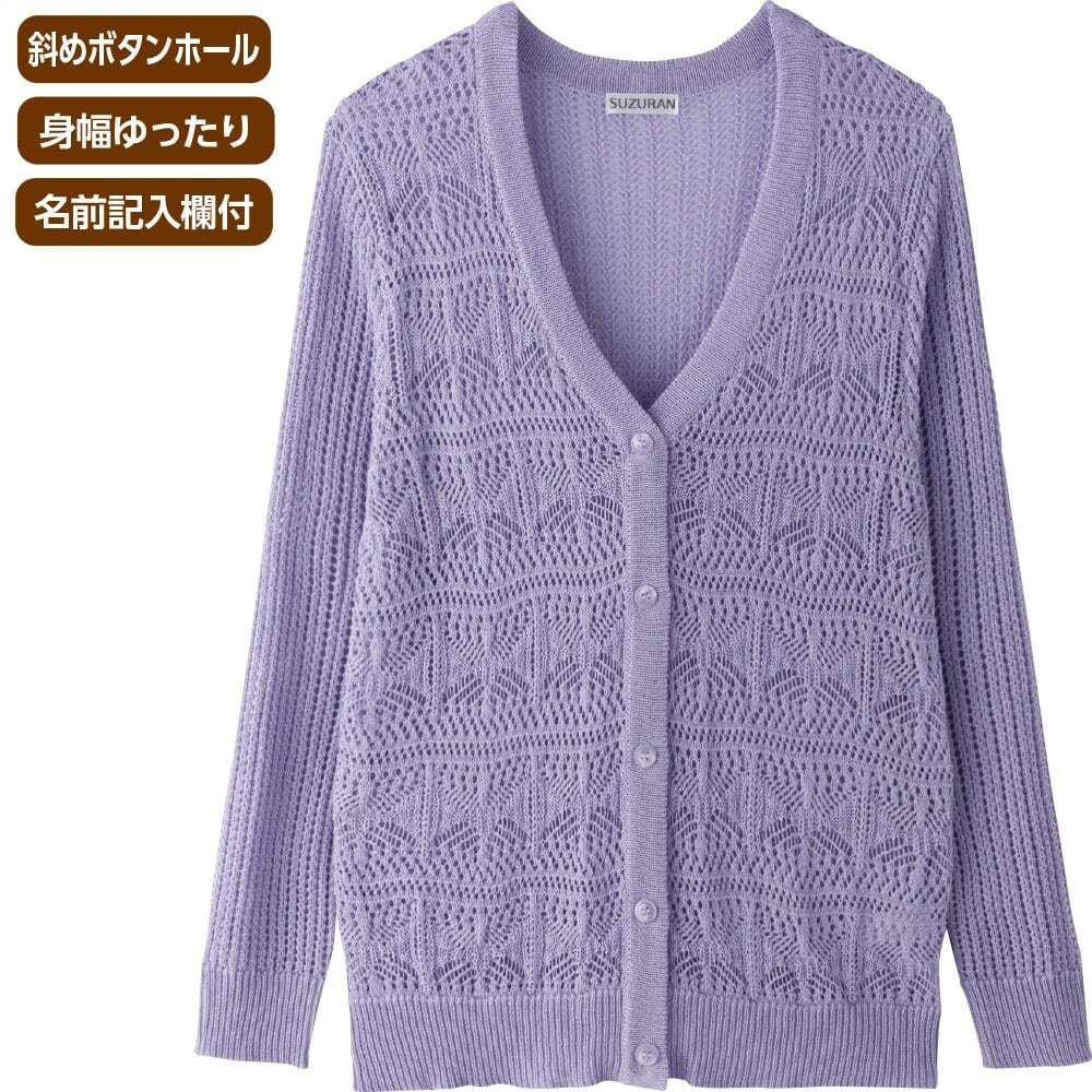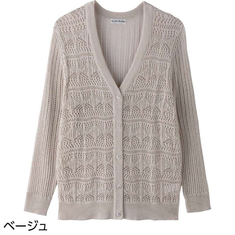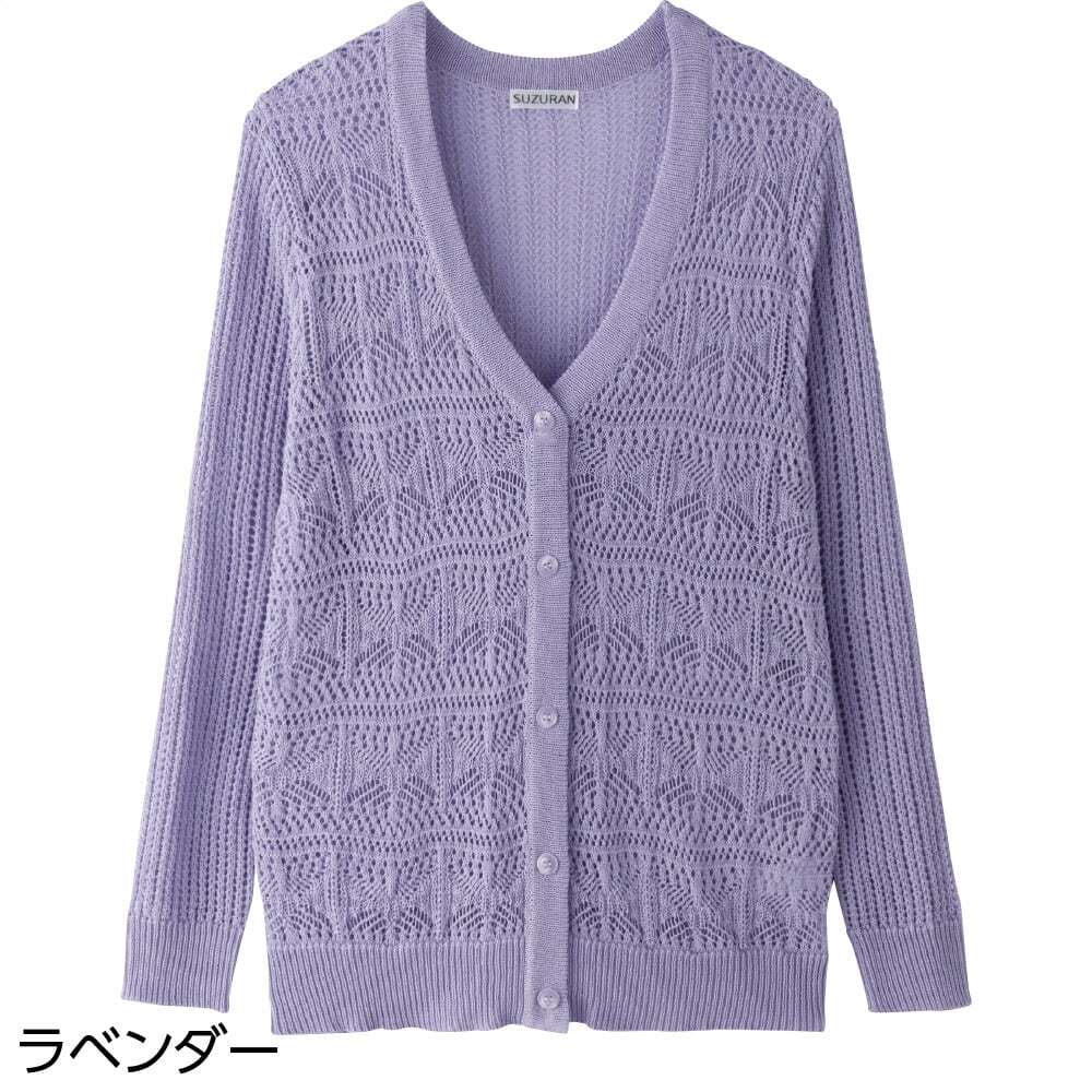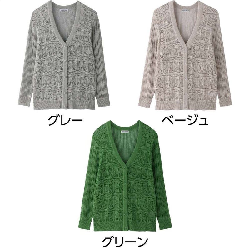 透かし柄V首カーディガン