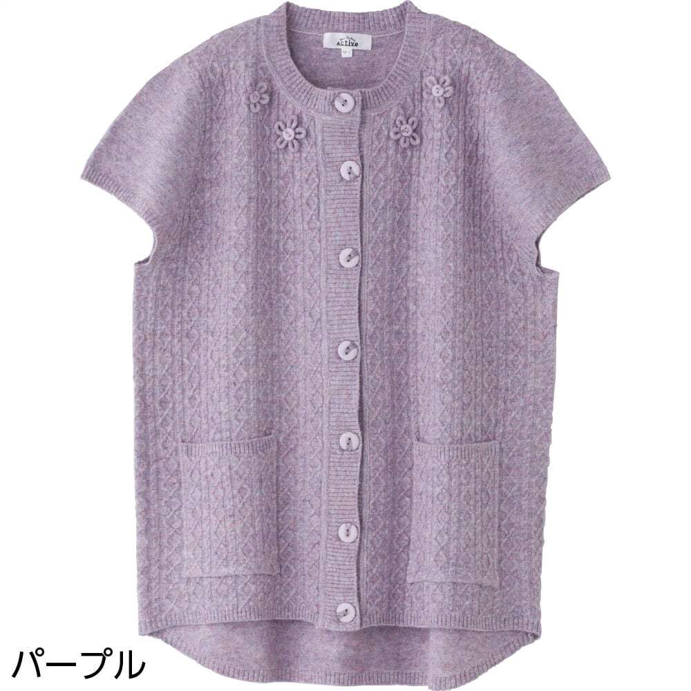 あったか毛混斜め釦ホールニットベスト