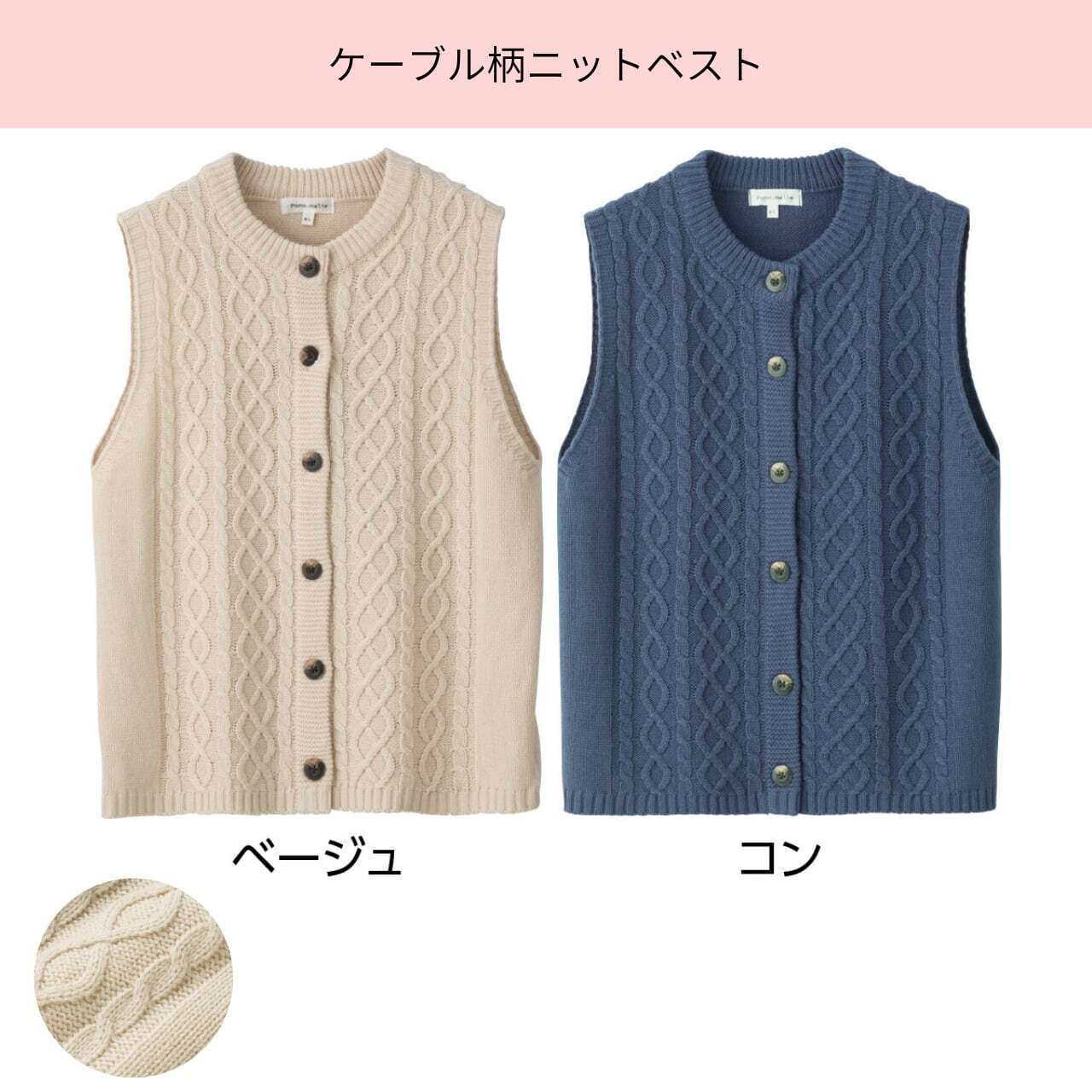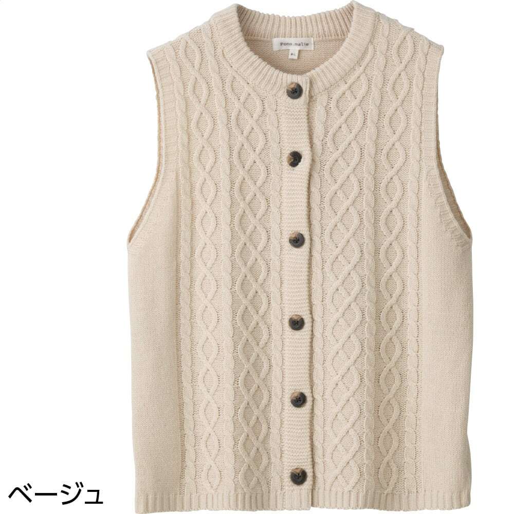 ケーブル柄ニットベスト