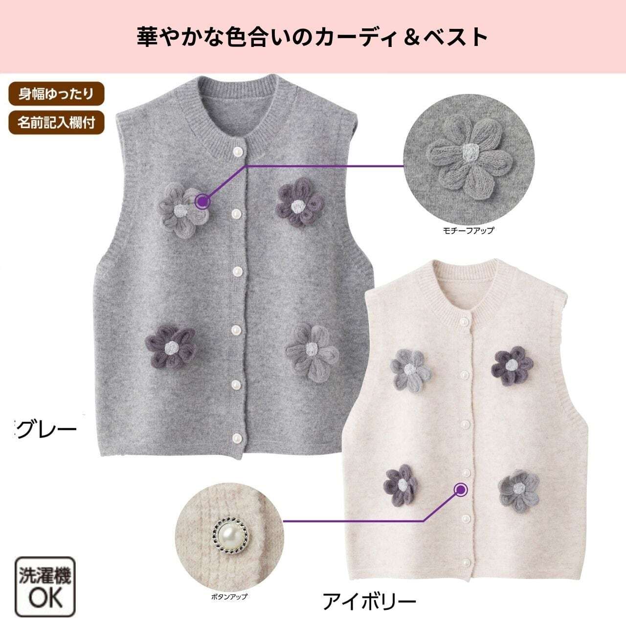 花モチーフ前開きベスト