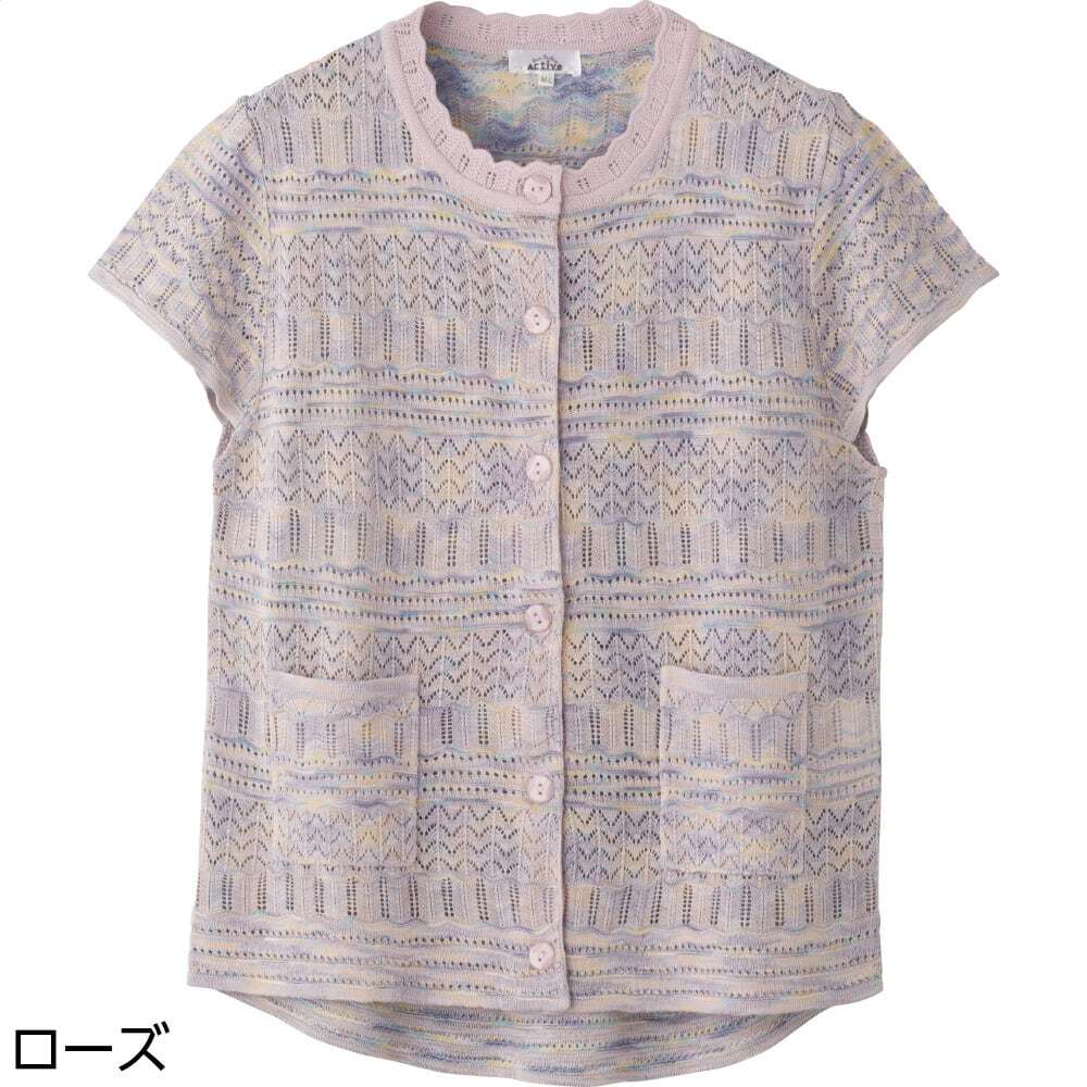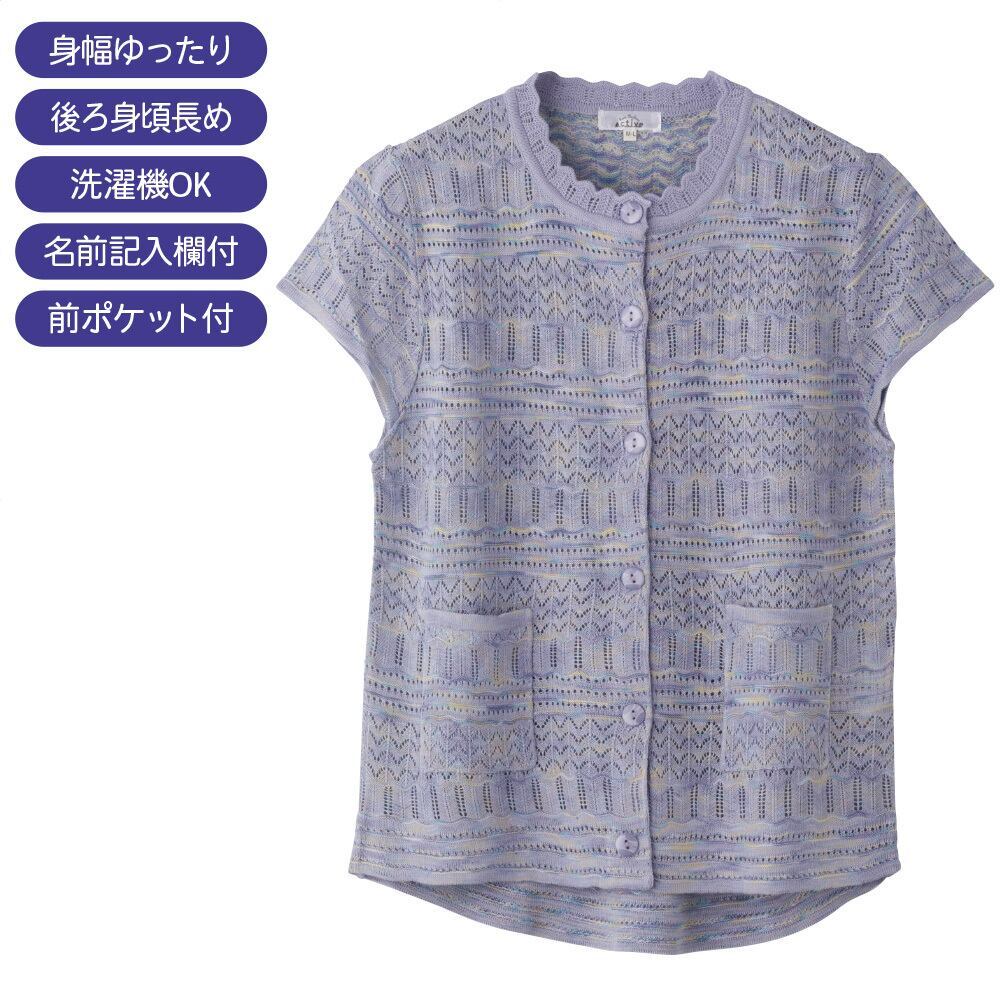ニット斜め釦ホール丸首ベスト