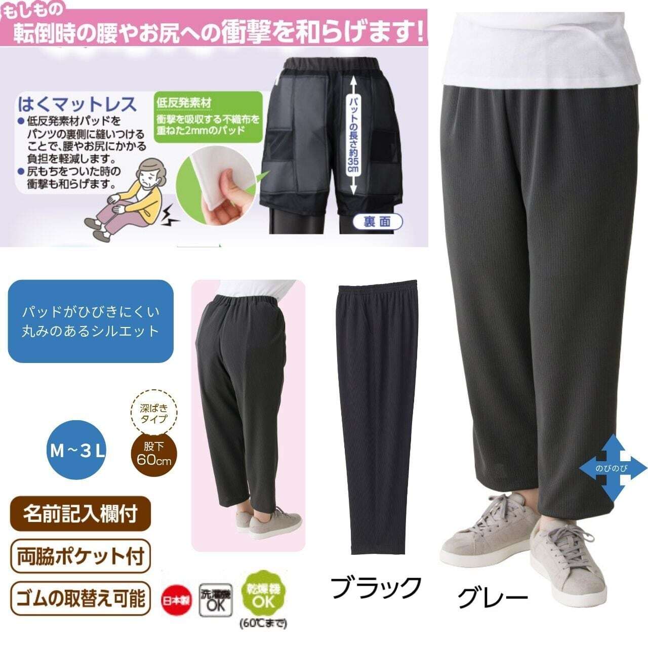 もしもの転倒時の腰やお尻への衝撃を和らげます!