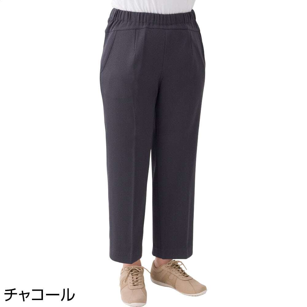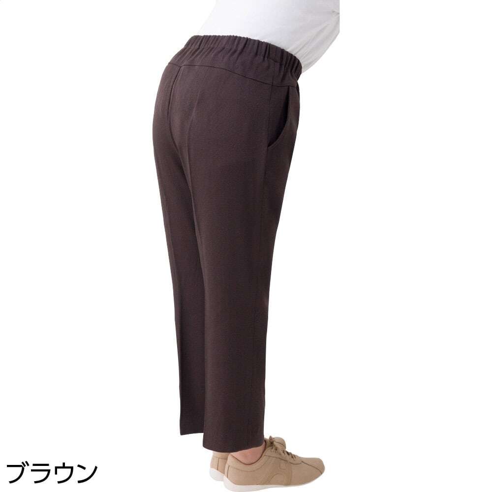 深い後股上で、前かがみの体型をさりげなくカバーし、キレイなシルエットに。