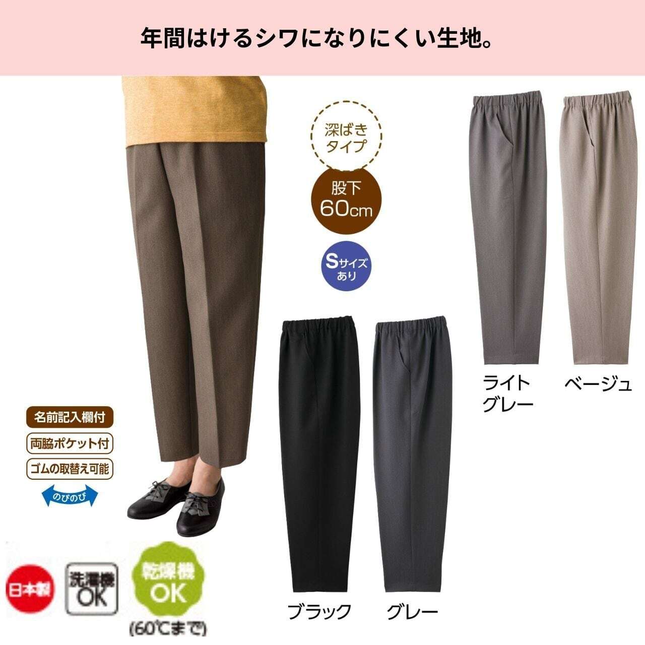 日本製!股上深め設計で腰を曲げても、背中が出にくい深履きフリーパンツ!