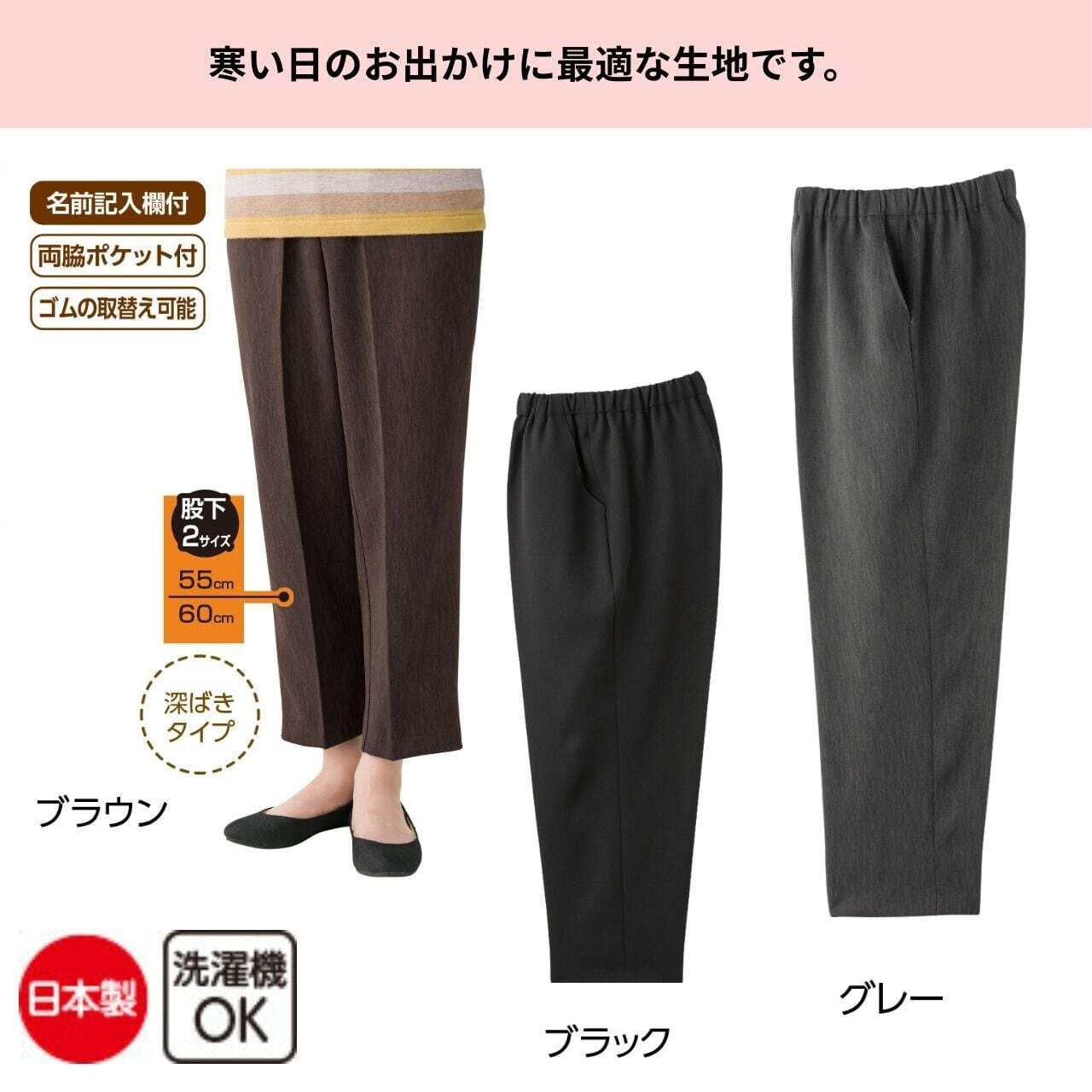 ナノヒーティング深履きらくらくパンツ(股下55㎝/60㎝)