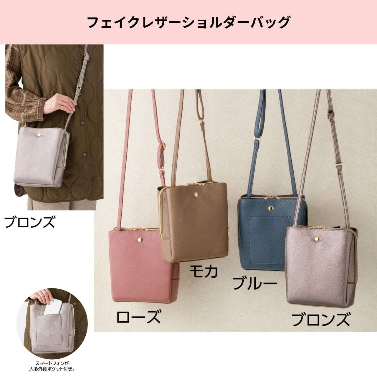 軽量フェイクレザーショルダーバッグ