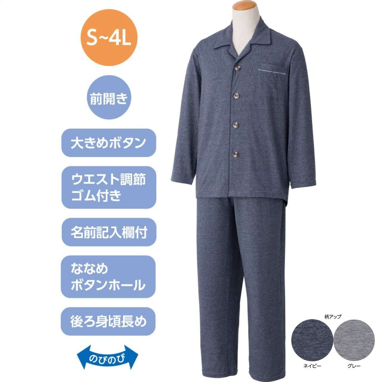 大きめボタンのびのびストレッチパジャマ