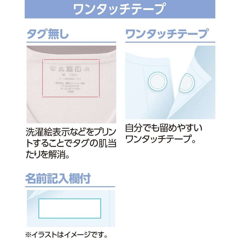 洗濯表示などをプリントすることでタグの肌あたりを解消