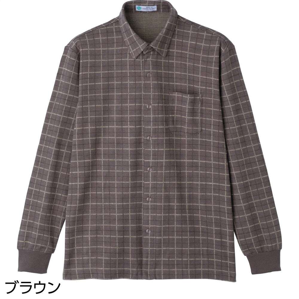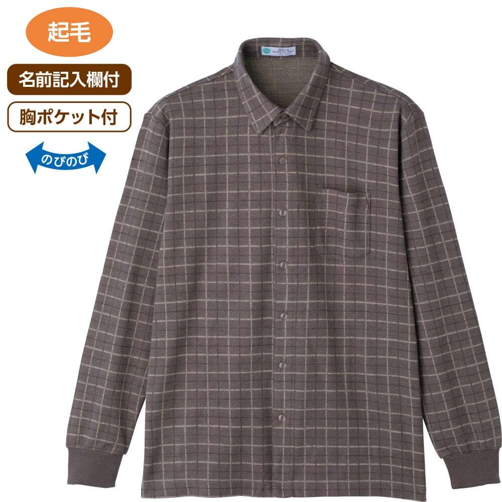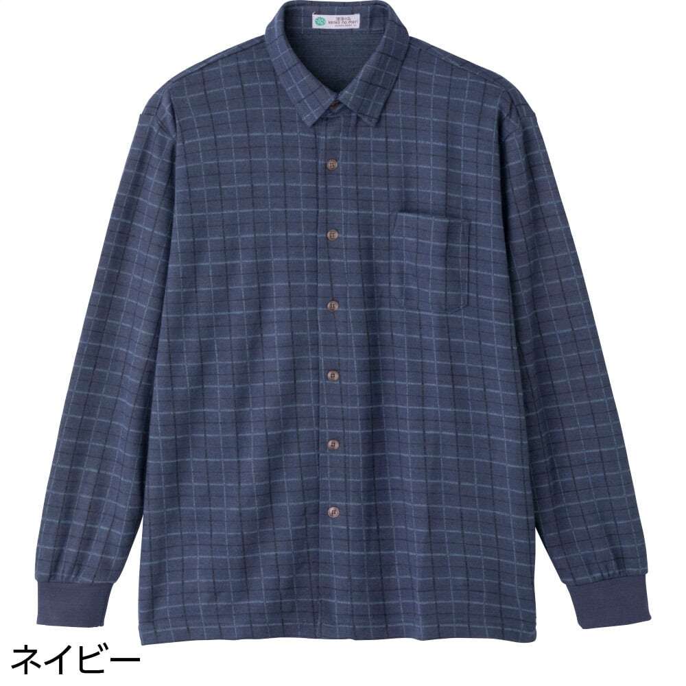 起毛斜め釦ホールニットシャツ
