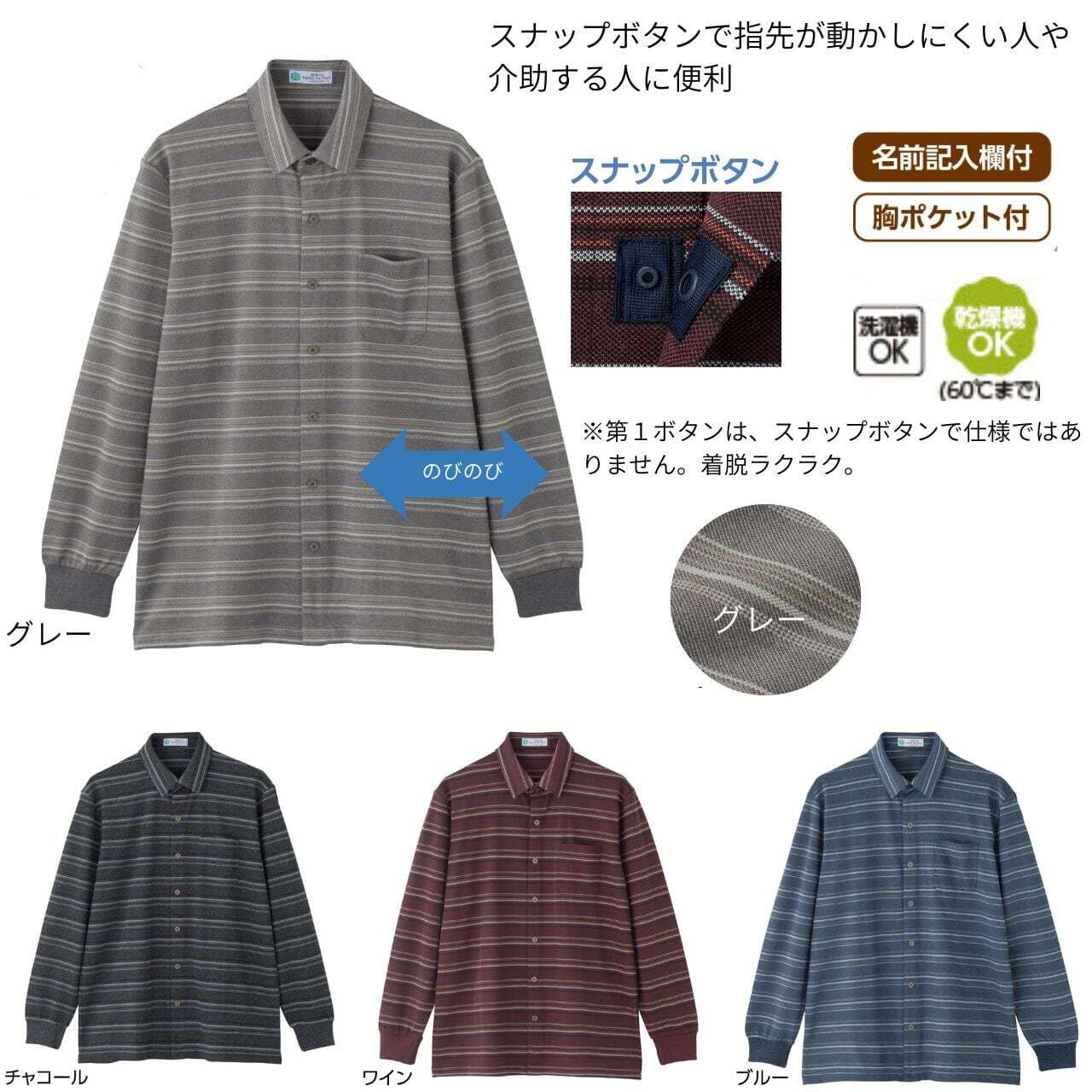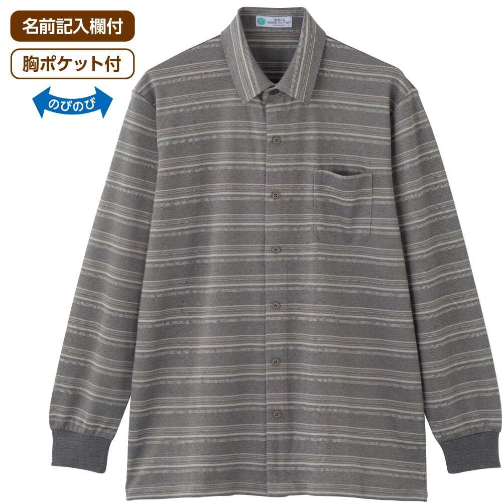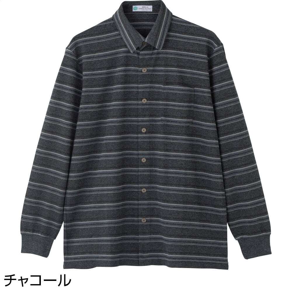 綿混スナップ釦ニットシャツ