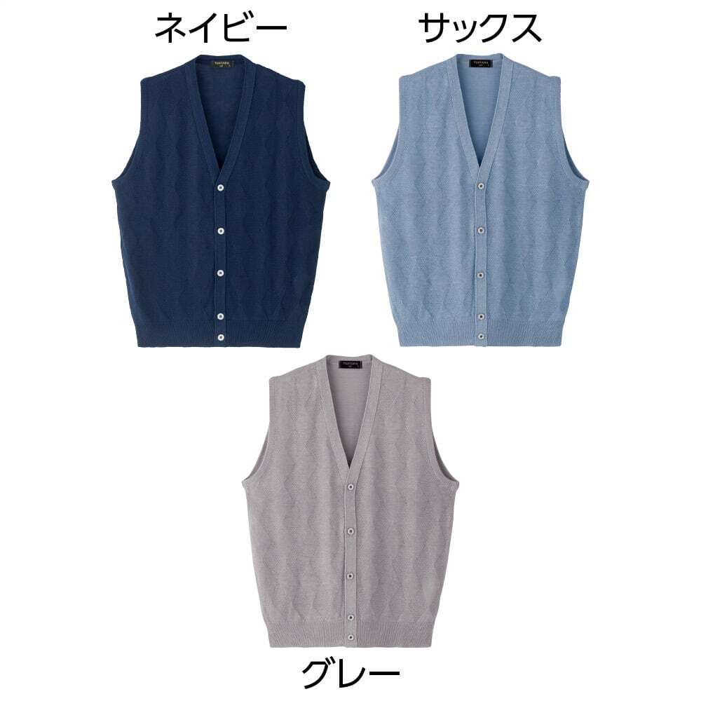 国産麻混ニット前開きベスト