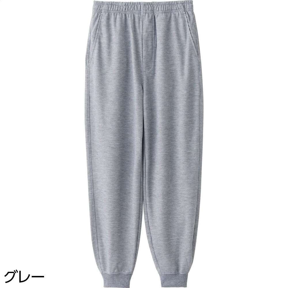 素材:ポリエステル90%・レーヨン10%・ウエスト総ゴム・ウエスト内ひも付・裾ゴム